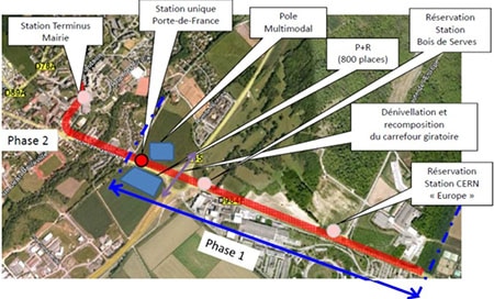 Ce dossier d'Utilité Publique a permis d'autoriser 2,1 km de tronçon reliant Genève à Saint-Genis-Pouilly et en desservant le CERN et ses employés etles quelques 26'000 véhicules/jour enregistrés. Le cout du projet se porte autour de 20 Millions d'euros. Le projet s'accompagne par la création d'un P+R de 800 places
